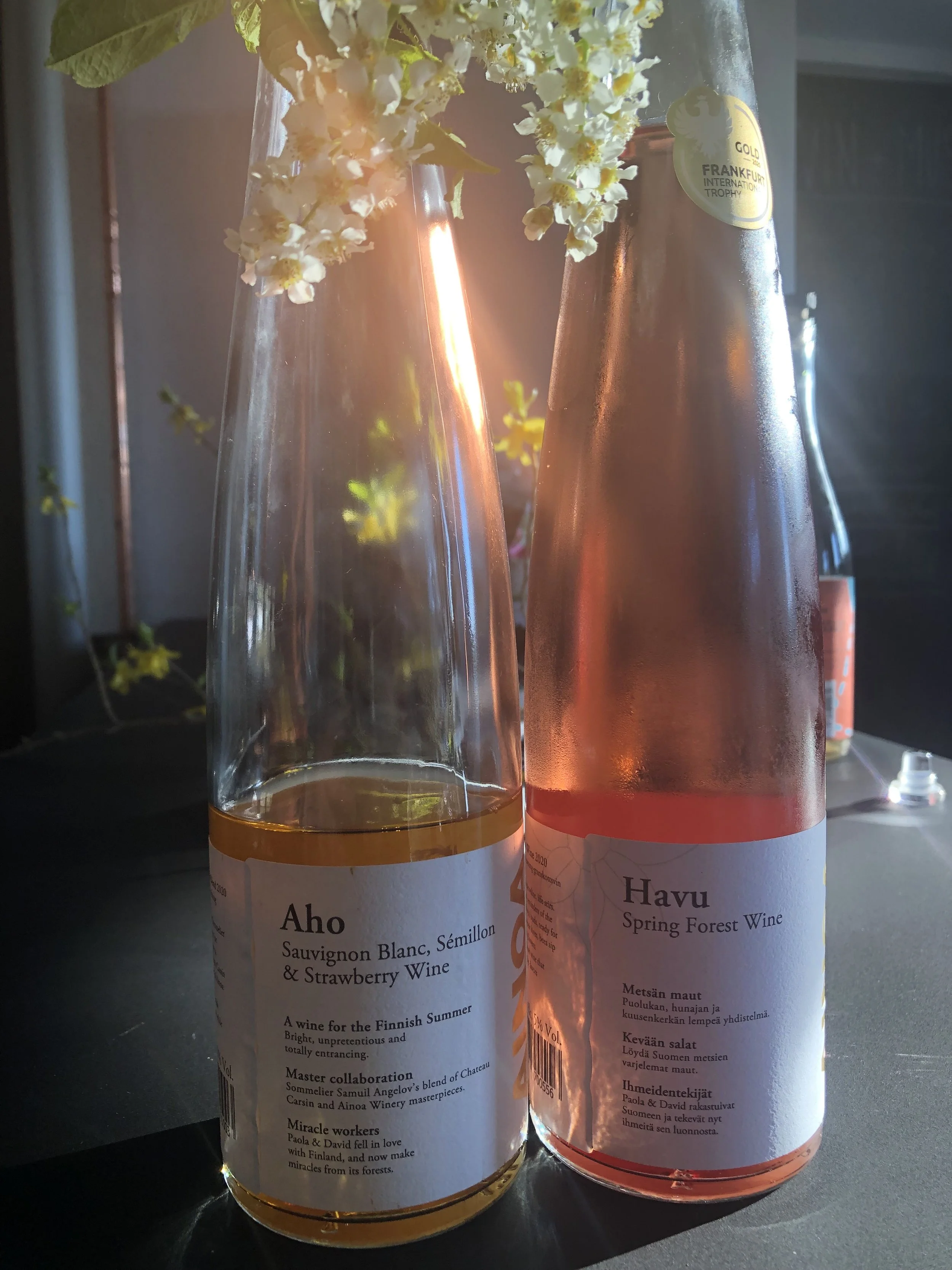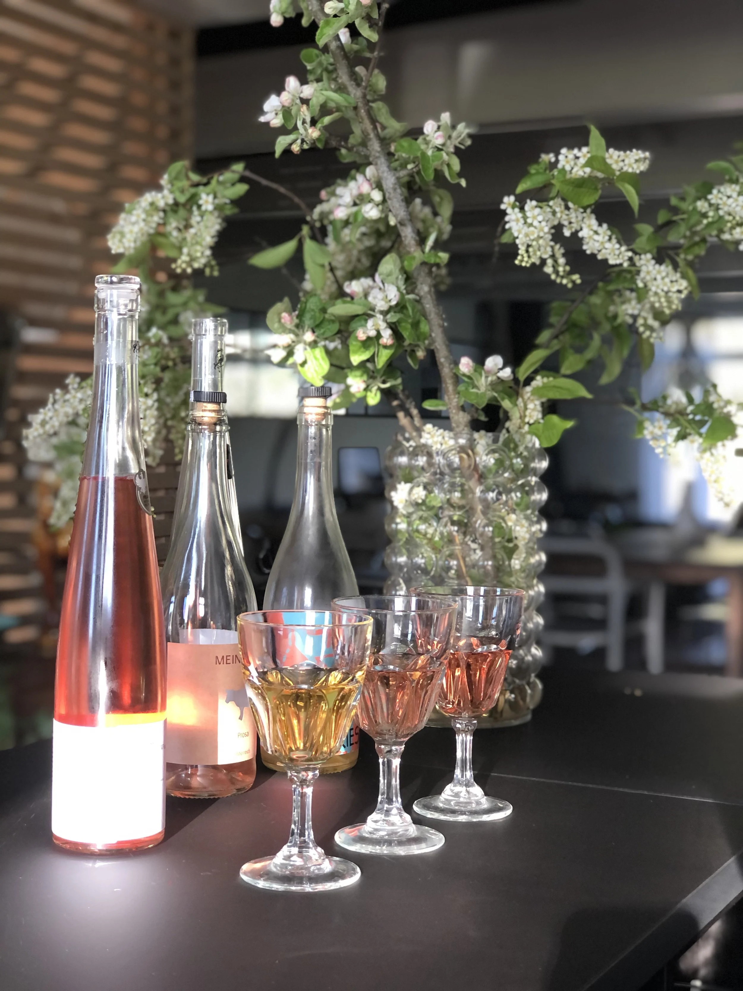 We had öfvergårds äppelmust come to visit us on Kumlinge- a lovely apple juice producer on Åland with several very special apple varieties. They brought 7 musts for us all to try- beautiful soft color and flavors. I love apple juice and impossible choosing a favorite between zonga and zari and rubinola! We decided to make a small wine menu tasting as well, to try a few wines from local wineries Ainoa and Noita to put on our drink list this summer.